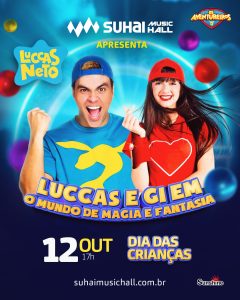 Prepare-se para um Dia das Crianças inesquecível! No dia 12 de outubro, a Suhai Music Hall recebe Luccas Neto com o espetáculo, “Luccas e Gi em: O Mundo de Magia e Fantasia”, uma produção emocionante para toda a família.